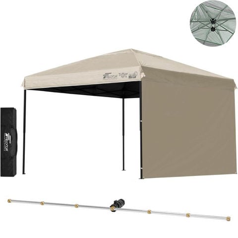 FIELDOOR ワンタッチタープテント 3m (遮光遮熱PU:ライトベージュ/スチール/強化版サイドフレーム/4点脚ロック/Cミストシャワー付/サイドシート1枚付) 横幕セット タープ 300 ワンタッチテント ワンタッチタープ 大型 簡単 UVカット 撥水 日よけ アウトドア キャンプ 送料無料