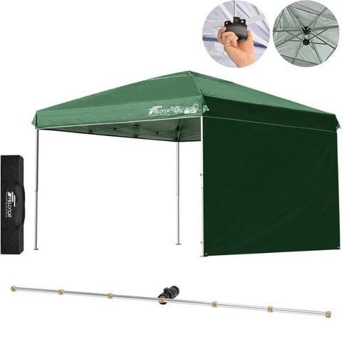 FIELDOOR ワンタッチタープテント 3m (標準:グリーン/スチール/強化版サイドフレーム/センターロック/Cミストシャワー付/サイドシート1枚付) 横幕セット タープ 300 ワンタッチテント ワンタッチタープ 大型 簡単 UVカット 撥水 日よけ アウトドア キャンプ 送料無料