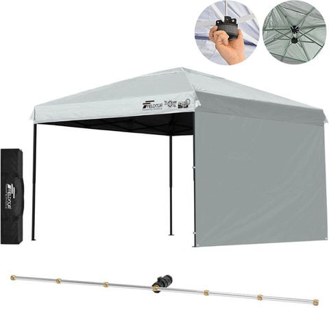 FIELDOOR ワンタッチタープテント 3m (遮光遮熱PU:グレー/スチール/強化版サイドフレーム/センターロック/Cミストシャワー付/サイドシート1枚付) 横幕セット タープ 300 ワンタッチテント ワンタッチタープ 大型 簡単 UVカット 撥水 日よけ アウトドア キャンプ 送料無料