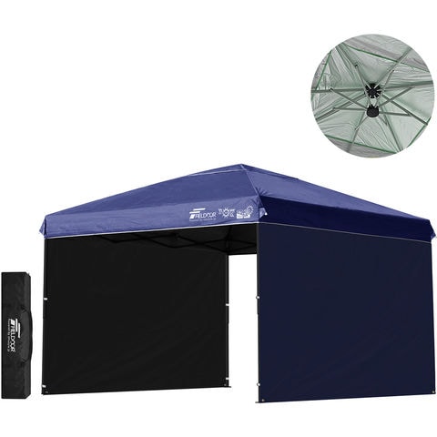 FIELDOOR ワンタッチタープテント 3m (遮光遮熱PU:ブルー/スチール/強化版サイドフレーム/4点脚ロック/タープ本体のみ/サイドシート2枚付) 横幕セット テント タープ 300 ワンタッチテント ワンタッチタープ 大型 簡単 UVカット 撥水 日よけ アウトドア キャンプ 送料無料