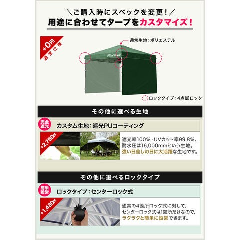 FIELDOOR ワンタッチタープテント 3m (遮光遮熱PU:グリーン/スチール/強化版サイドフレーム/センターロック/タープ本体のみ/サイドシート2枚付) 横幕セット テント タープ 300 ワンタッチテント ワンタッチタープ 大型 簡単 UVカット 撥水 日よけ アウトドア キャンプ 送料無料