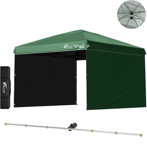 FIELDOOR ワンタッチタープテント 3m (遮光遮熱PU:グリーン/スチール/強化版サイドフレーム/4点脚ロック/Cミストシャワー付/サイドシート2枚付) 横幕セット タープ 300 ワンタッチテント ワンタッチタープ 大型 簡単 UVカット 撥水 日よけ アウトドア キャンプ 送料無料