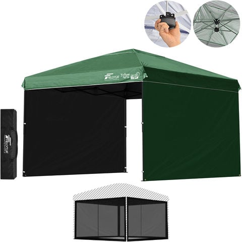 FIELDOOR ワンタッチタープテント 3m (遮光遮熱PU:グリーン/スチール/強化版サイドフレーム/センターロック/Bバグガード付/サイドシート2枚付) 横幕セット テント タープ 300 ワンタッチテント ワンタッチタープ 大型 簡単 UVカット 撥水 日よけ アウトドア キャンプ 送料無料