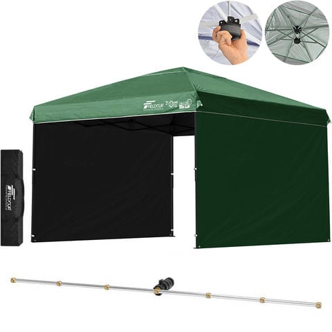 FIELDOOR ワンタッチタープテント 3m (遮光遮熱PU:グリーン/スチール/強化版サイドフレーム/センターロック/Cミストシャワー付/サイドシート2枚付) 横幕セット タープ 300 ワンタッチテント ワンタッチタープ 大型 簡単 UVカット 撥水 日よけ アウトドア キャンプ 送料無料