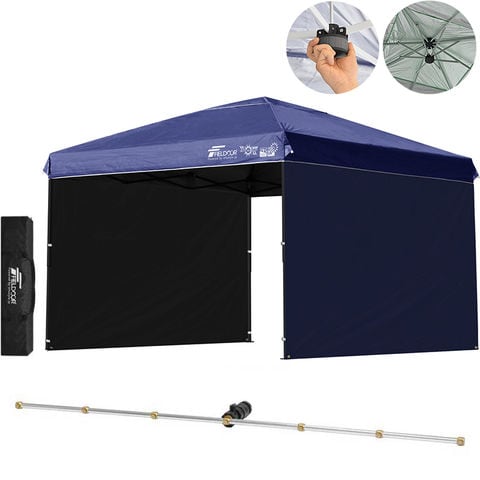 FIELDOOR ワンタッチタープテント 3m (遮光遮熱PU:ブルー/スチール/強化版サイドフレーム/センターロック/Cミストシャワー付/サイドシート2枚付) 横幕セット タープ 300 ワンタッチテント ワンタッチタープ 大型 簡単 UVカット 撥水 日よけ アウトドア キャンプ 送料無料