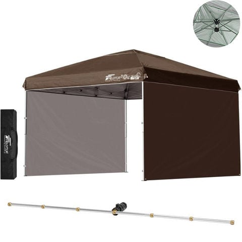 FIELDOOR ワンタッチタープテント 3m (標準:ダークブラウン/スチール/強化版サイドフレーム/4点脚ロック/Cミストシャワー付/サイドシート2枚付) 横幕セット テント タープ 300 ワンタッチテント ワンタッチタープ 大型 簡単 UVカット 撥水 日よけ アウトドア キャンプ 送料無料