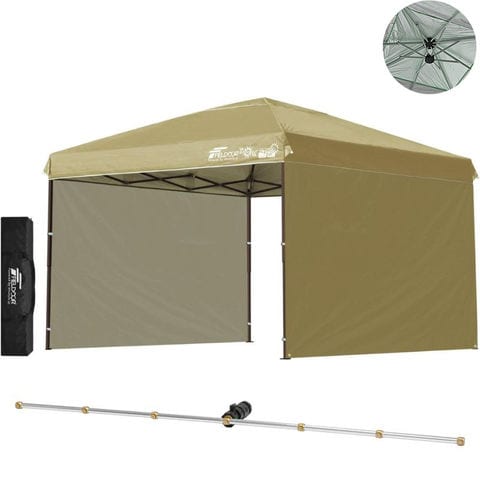 FIELDOOR ワンタッチタープテント 3m (標準:サンド/スチール/強化版サイドフレーム/4点脚ロック/Cミストシャワー付/サイドシート2枚付) 横幕セット テント タープ 300 ワンタッチテント ワンタッチタープ 大型 簡単 UVカット 撥水 日よけ アウトドア キャンプ 送料無料