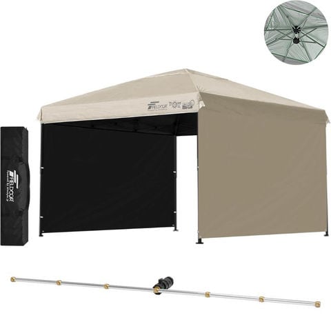 FIELDOOR ワンタッチタープテント 3m (遮光遮熱PU:ライトベージュ/スチール/強化版サイドフレーム/4点脚ロック/Cミストシャワー付/サイドシート2枚付) 横幕セット タープ 300 ワンタッチテント ワンタッチタープ 大型 簡単 UVカット 撥水 日よけ アウトドア キャンプ 送料無料
