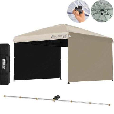 FIELDOOR ワンタッチタープテント 3m (遮光遮熱PU:ライトベージュ/スチール/強化版サイドフレーム/センターロック/Cミストシャワー付/サイドシート2枚付) 横幕セット タープ 300 ワンタッチテント 大型 簡単 UVカット 撥水 日よけ アウトドア キャンプ 送料無料