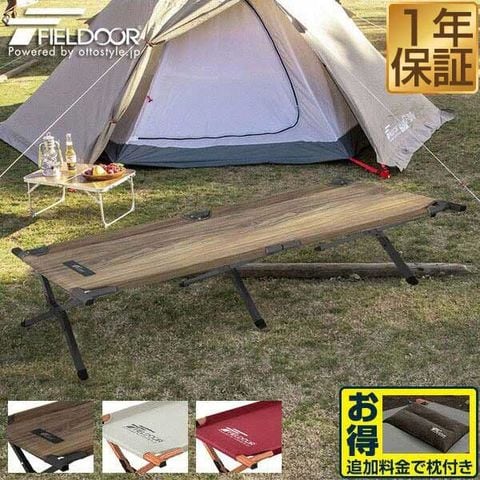 FIELDOOR アウトドアコット (木目柄/マットブラック/コット本体のみ) 190cm×69cm 木目調フレーム 折りたたみ ベッド コット ベンチ レジャーコット チェア 椅子 キャンプ 荷物置き 送料無料