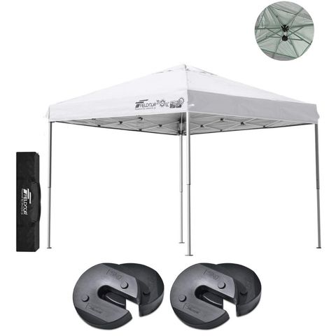 FIELDOOR ワンタッチタープテント 2.5m (標準:ホワイト/スチール/強化版サイドフレーム/4点脚ロック/Dウエイト4点付) テント タープ ワンタッチ ワンタッチテント ワンタッチタープ UV加工 撥水 ベンチレーション 収納バッグ付 日よけ キャンプ 送料無料