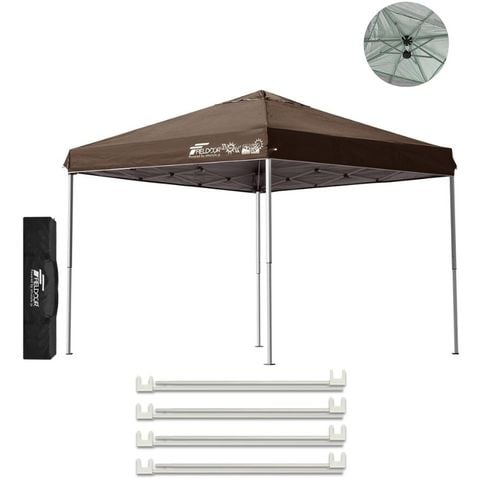 FIELDOOR ワンタッチタープテント 2.5m (標準:ダークブラウン/スチール/強化版サイドフレーム/4点脚ロック/A強化サポート付) テント タープ ワンタッチ ワンタッチテント ワンタッチタープ UV加工 撥水 ベンチレーション 収納バッグ付 日よけ キャンプ 送料無料