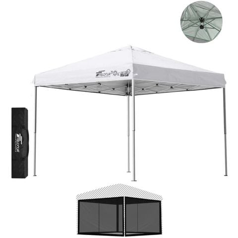 FIELDOOR ワンタッチタープテント 2.5m (標準:ホワイト/スチール/強化版サイドフレーム/4点脚ロック/Bバグガード付) テント タープ ワンタッチ ワンタッチテント ワンタッチタープ UV加工 撥水 ベンチレーション 収納バッグ付 日よけ キャンプ 送料無料