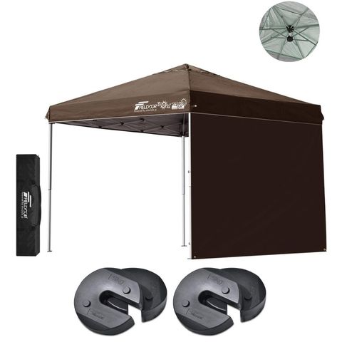 FIELDOOR ワンタッチタープテント 2.5m (標準:ダークブラウン/スチール/強化版サイドフレーム/4点脚ロック/Dウエイト4点付/サイドシート1枚付) テント タープ ワンタッチテント ワンタッチタープ UV加工 撥水 ベンチレーション 日よけ キャンプ 送料無料