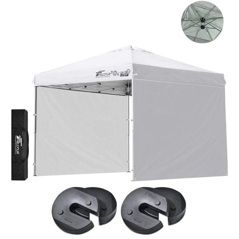 FIELDOOR ワンタッチタープテント 2.5m (標準:ホワイト/スチール/強化版サイドフレーム/4点脚ロック/Dウエイト4点付/サイドシート2枚付) テント タープ ワンタッチテント ワンタッチタープ UV加工 撥水 ベンチレーション 日よけ キャンプ 送料無料
