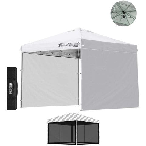 FIELDOOR ワンタッチタープテント 2.5m (標準:ホワイト/スチール/強化版サイドフレーム/4点脚ロック/Bバグガード付/サイドシート2枚付) テント タープ ワンタッチテント ワンタッチタープ UV加工 撥水 ベンチレーション 日よけ キャンプ 送料無料