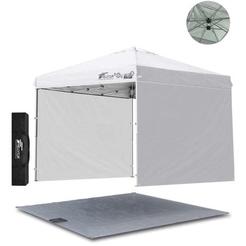 FIELDOOR ワンタッチタープテント 2.5m (標準:ホワイト/スチール/強化版サイドフレーム/4点脚ロック/Cグランドシート付/サイドシート2枚付) テント タープ ワンタッチテント ワンタッチタープ UV加工 撥水 ベンチレーション 日よけ キャンプ 送料無料