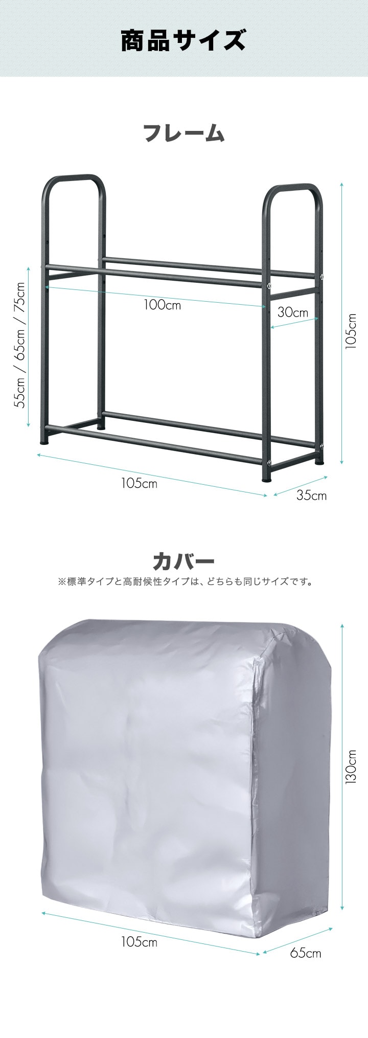 | カバーサイズ: (約)幅105cm×奥行65cm×高さ130cm |