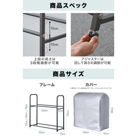 | フレームサイズ(内寸): (約)幅100cm×奥行き30cm ※下段と上段の間の高さ : (約)55cm/65cm/75cm |