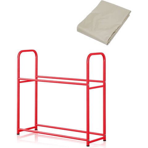タイヤラック 8本 カバー付き 2段 (レッド/高耐候420Dカバー/キャスターなし) 縦置き ワイド 100cm タイヤスタンド ワイドタイプ タイヤ収納ラック タイヤラックカバー 厚手 タイヤ交換 タイヤ保管 スタッドレス 冬タイヤ 屋外 物置 頑丈 送料無料