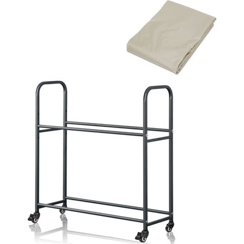 タイヤラック 8本 カバー付き 2段 (グレー/高耐候420Dカバー/キャスター付き) 縦置き ワイド 100cm タイヤスタンド ワイドタイプ タイヤ収納ラック タイヤラックカバー 厚手 タイヤ交換 タイヤ保管 スタッドレス 冬タイヤ 屋外 物置 頑丈 送料無料
