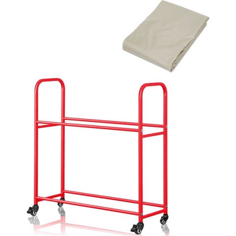 タイヤラック 8本 カバー付き 2段 (レッド/高耐候420Dカバー/キャスター付き) 縦置き ワイド 100cm タイヤスタンド ワイドタイプ タイヤ収納ラック タイヤラックカバー 厚手 タイヤ交換 タイヤ保管 スタッドレス 冬タイヤ 屋外 物置 頑丈 送料無料