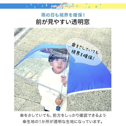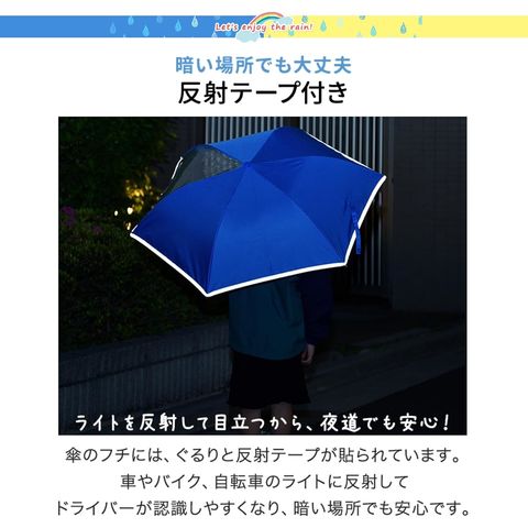 Ombrage 傘 子供用 折りたたみ 50cm (ブルー) 男の子 女の子 幼稚園 小学生 手開き 透明窓付き 反射テープ付 超撥水 軽い 軽量 前が見える透明窓 窓あり 折れにくい カサ かさ 雨傘 折り畳み 折りたたみ傘 かわいい 子ども用 子供 通園 通学 送料無料
