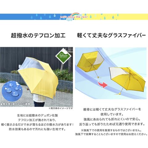 | 特記事項: ※商品の布地には撥水加工を施しておりますが、激しい雨の際は、雨水が傘生地にしみる事があります、ご了承ください。 また強風時は破損する恐れがありますので使用をお控えください。 ※ご使用後は傘を広げて十分に湿気を取り除いてください。湿ったまま保管しますと、金属部分の錆の原因となります。 |