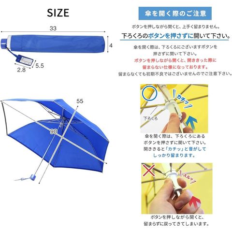 | サイズ: 親骨:(約)50cm 収納時:(約)直径4cm×長さ33cm 使用時:(約)直径90cm×長さ55cm |