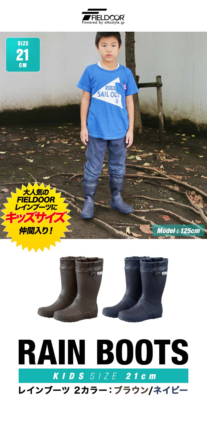 長靴 レインブーツ レディース ロング (ブラウン/21cm キッズサイズ) 長くつ 靴 ラバーブーツ メンズ キッズ 大きいサイズ 雨 雨用 収納袋付き キャンプ フェス アウトドア ガーデニング 農作業 釣り フィッシング フィールドア 折りたたみ 男の子 女の子 FIELDOOR 送料無料
