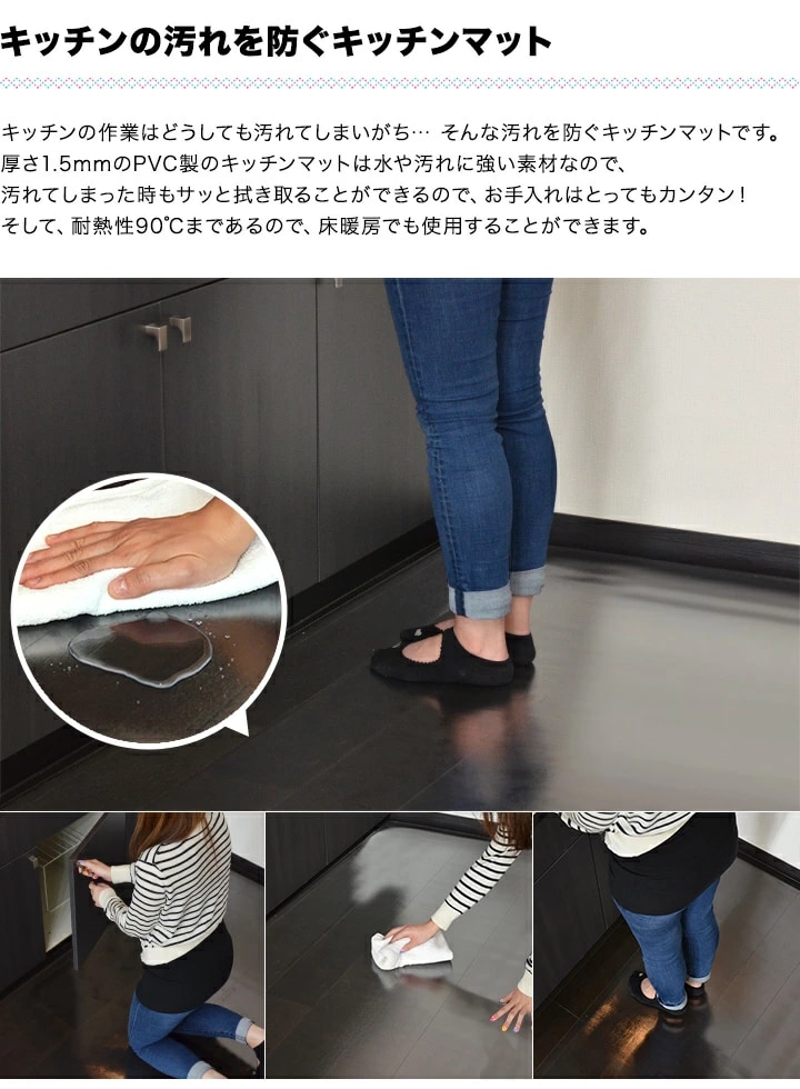汚れてもサッと拭けるPVC製キッチンマット PVCキッチンマット 300cm×60cm/80cm/100cm(1.5mm厚) ソフトタイプ クリア |