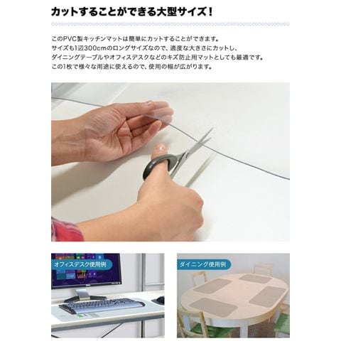PVCキッチンマット (60cm×300cm/クリア) 3m 厚さ1.5mm 撥水 大判 ソフト クリアキッチンマット クリアマット 透明マット エンボス加工 ハサミで切れる 送料無料