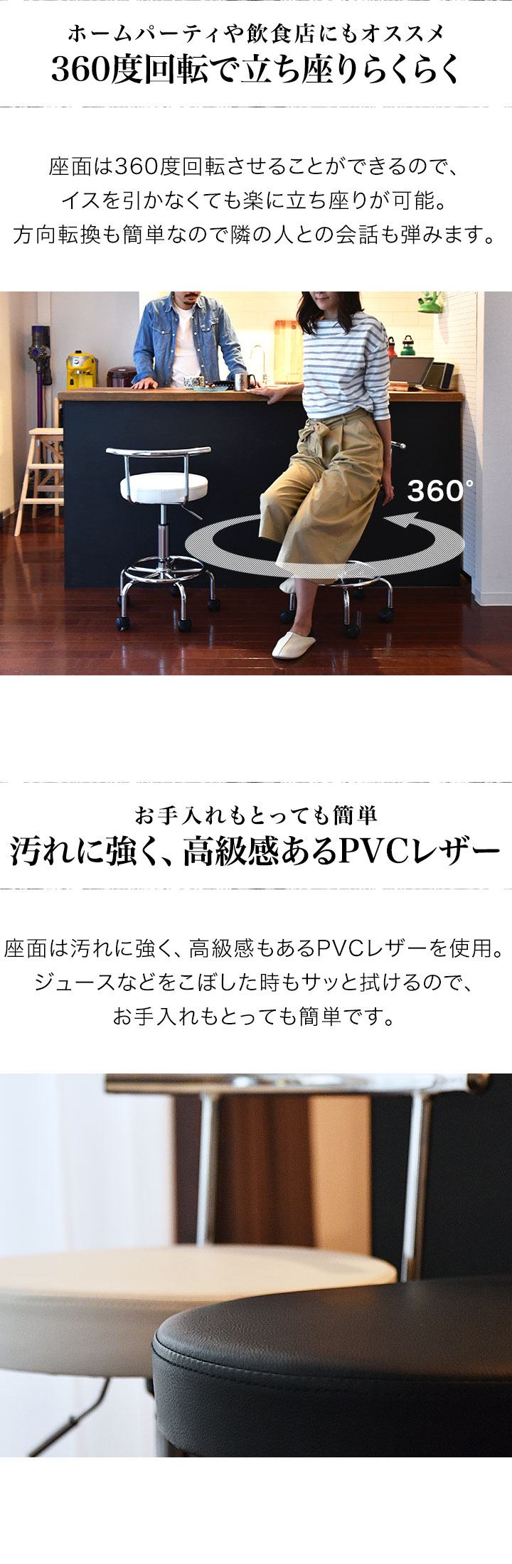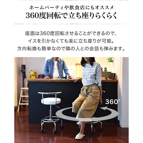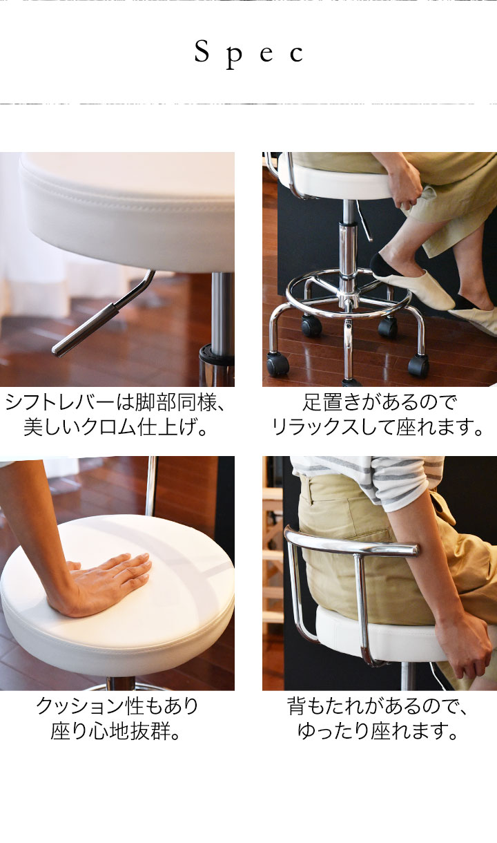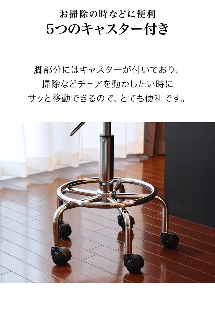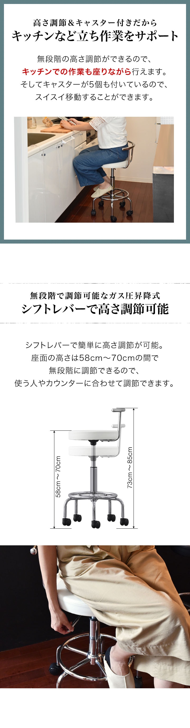 カウンターチェア (オフホワイト) キャスター付き 背もたれ付き キッチンチェア バーチェア PUレザー ハイチェア バースツール ハイスツール 椅子 高さ調整 座面高 58cm~70cm おしゃれ レトロ ヴィンテージ チェア 回転 昇降式 ガス圧 カフェ 送料無料