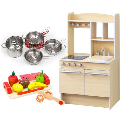 RiZKiZ ままごと キッチン (ビーチ/本体&お鍋&フルーツセット) お店ごっこ 両面 木製 子供 子ども 3歳~ ままごとセット ままごとキッチンセット ごっこ遊び ままごとキッチン お店屋さん 台所 おもちゃ お料理 食材 知育玩具 プレゼント 送料無料