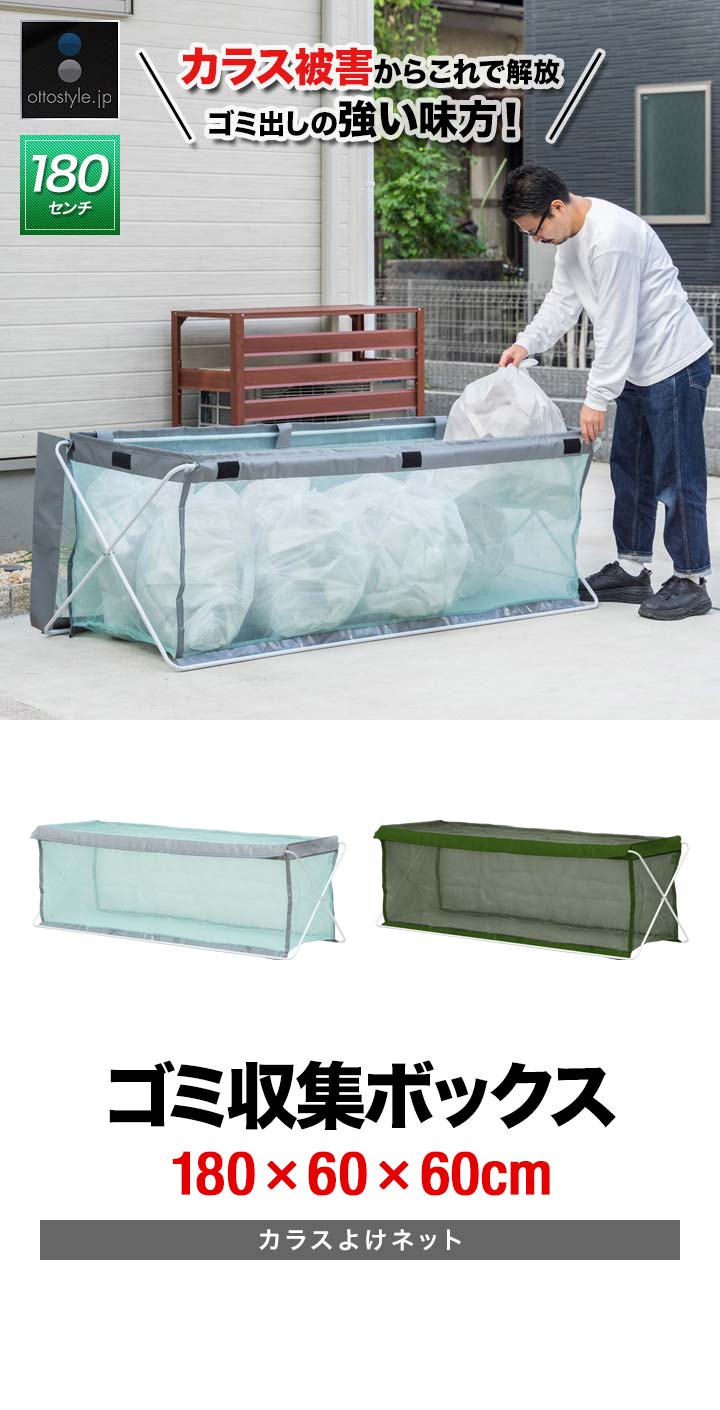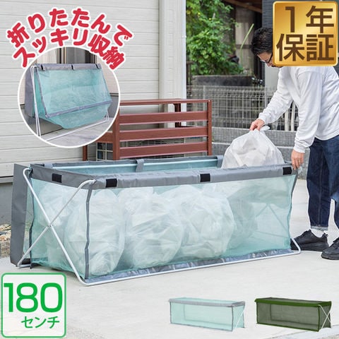 ゴミネット ゴミステーション 折りたたみ (グレー) 幅180cm/250L相当 大容量 45Lゴミ袋×8袋分 幅180cm×60cm×60cm 大型 カラスよけ 防鳥ネット カラス対策 ゴミストッカー ごみ収集箱 BOX ゴミ出し ゴミ置き場 猫よけ 屋外 折りたたみ式ゴミ収集ボックス 送料無料