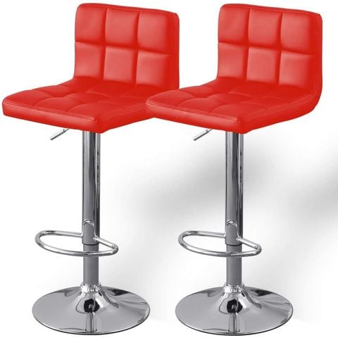 カウンターチェア (レッド×クロム脚/2脚セット) PUレザー 背もたれ付き ハイチェア ハイスツール バースツール 椅子 高さ調整 座面高 67cm~77cm おしゃれ モダン レトロ ヴィンテージ カフェ 喫茶店 チェア 回転式 昇降式 ガス圧 送料無料