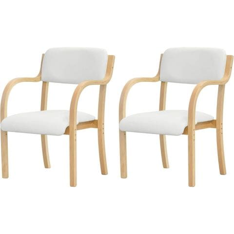 ダイニングチェア 肘付き 椅子 (2脚セット/ナチュラル×ホワイト) 介護椅子 スタッキングチェア ビニールレザー PVC ダイニングチェアー チェア リビングチェア 肘掛け付チェア いす スタッキング 介護施設 送料無料