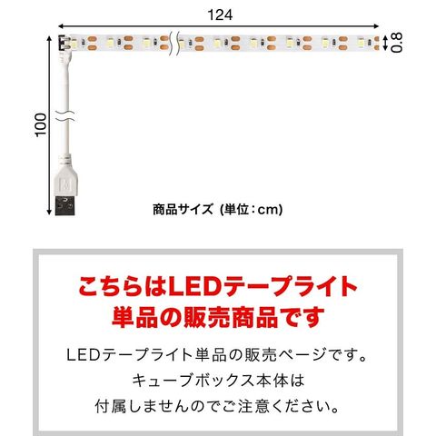 LEDテープライト 124cm 単品 (キューブボックス アクリル扉付タイプ用) USB電源 USB給電 コレクションケース カラーボックス キューブ ラック ディスプレイケース アクリルケース用 ※キューブボックス本体別売 送料無料
