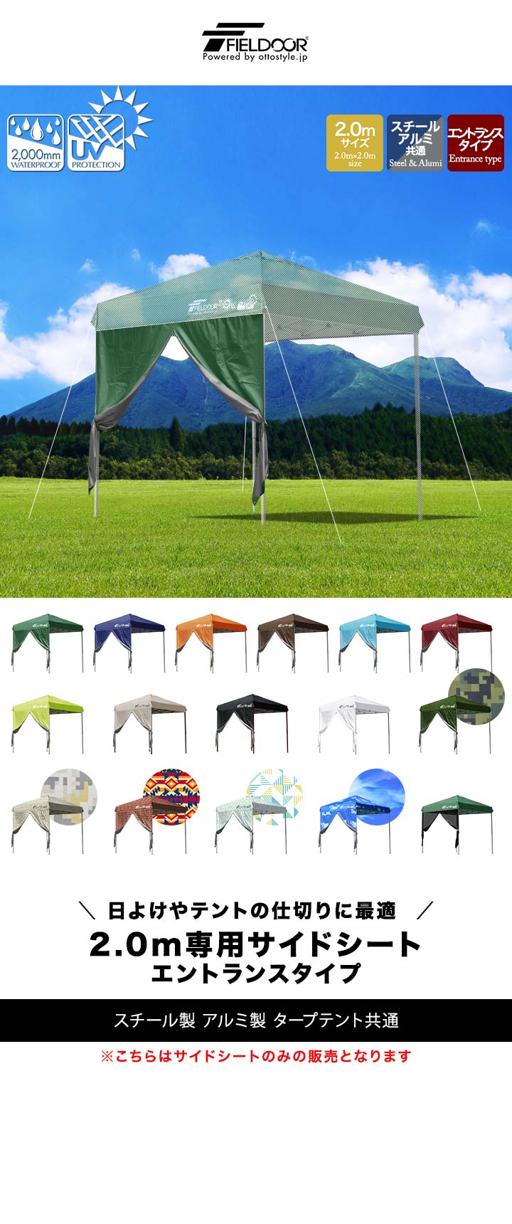FIELDOOR ワンタッチタープ 2m専用 (エントランス:ノーマル/標準ポリエステル:ブラック) サイドシート 横幕 2m 200cm ウォールスクリーン 追加オプション ワンタッチタープ専用 日よけ 目隠し シェード ※タープテント本体別売 送料無料