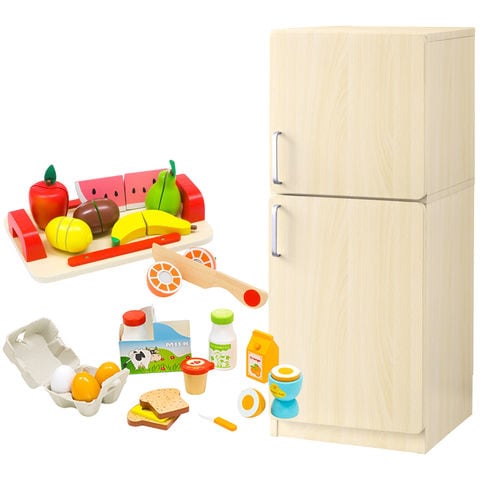 RiZKiZ ままごと キッチン (ビーチ/本体&おもちゃ2種セット) 冷蔵庫 木製 ごっこ遊び ままごとキッチン 子供 子ども 3歳~ ままごとセット ままごとキッチンセット おもちゃ収納 棚 キッチン おもちゃ 玩具 台所 料理 知育玩具 子ども部屋 クリスマス 送料無料