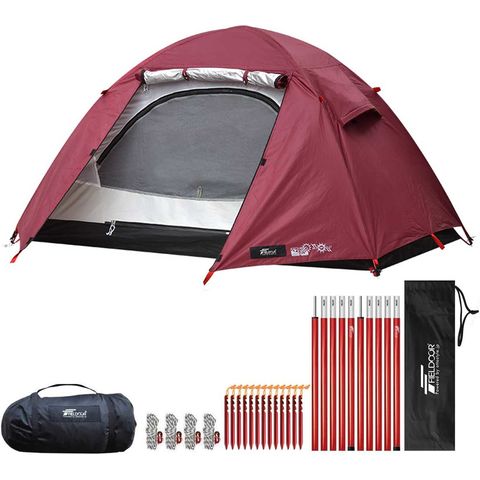 FIELDOOR テント ソロテント (ボルドー/本体&追加ポール2本付) フィールドキャンプドーム 100 1人用 210x105cm ドームテント UVカット ドーム型 耐水圧 1,500mm以上 メッシュ フルクローズテント キャノピー インナーテント テントポール 簡易テント 送料無料