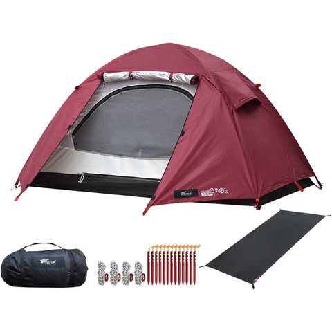 FIELDOOR テント ソロテント (ボルドー/本体&グランドシート付) フィールドキャンプドーム 100 1人用 210x105cm ドームテント UVカット ドーム型 耐水圧 1,500mm以上 メッシュ フルクローズテント キャノピー インナーテント テントポール 簡易テント 送料無料