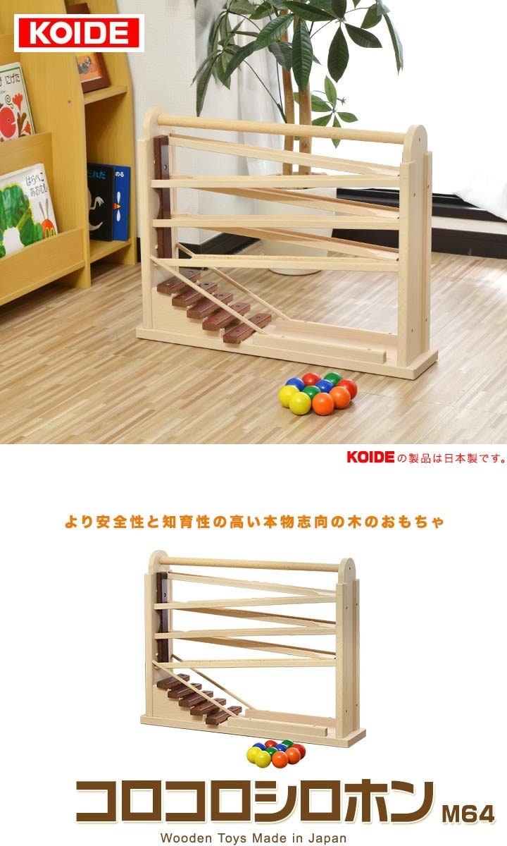 コイデ KOIDE 日本製 木製 おもちゃ 玩具 コロコロシロホン M64 木琴 ボール 楽器 スロープ 知育 室内 3歳 男の子 女の子 子供 幼児 ベビー 知育玩具 クリスマス 送料無料
