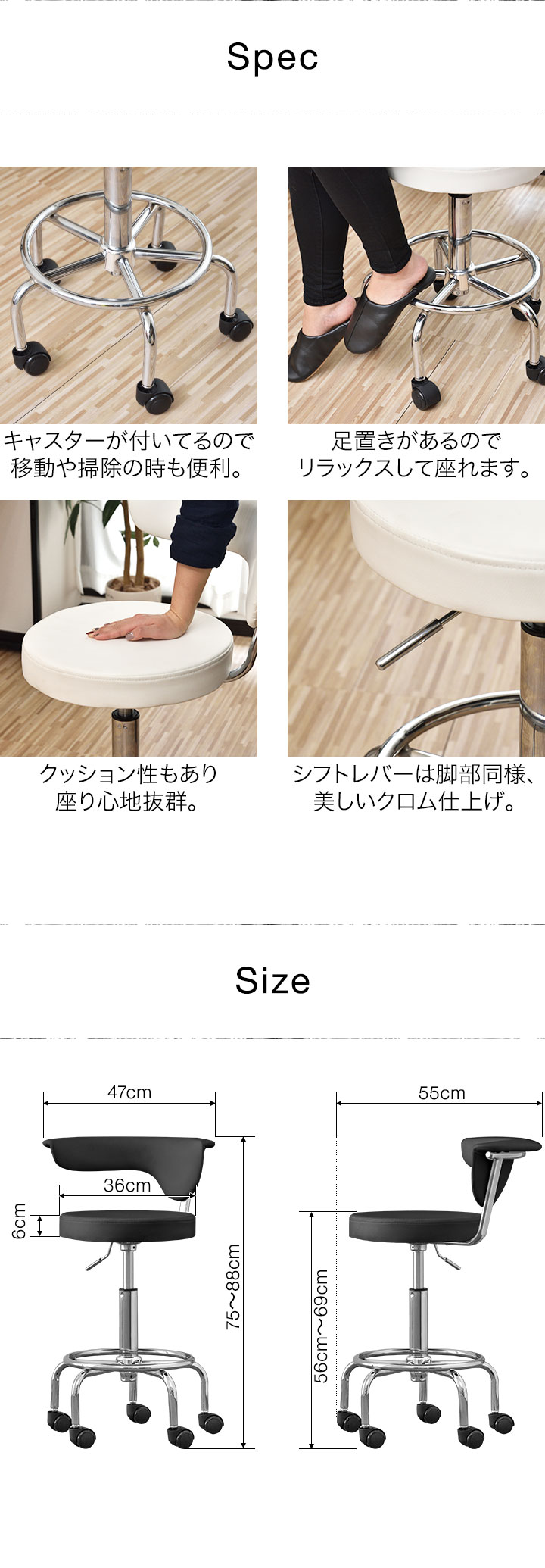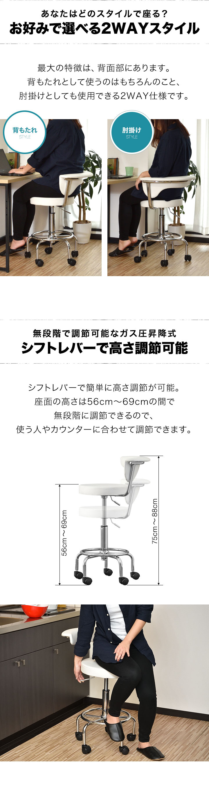 座面の高さ : (約)56cm~69cm
