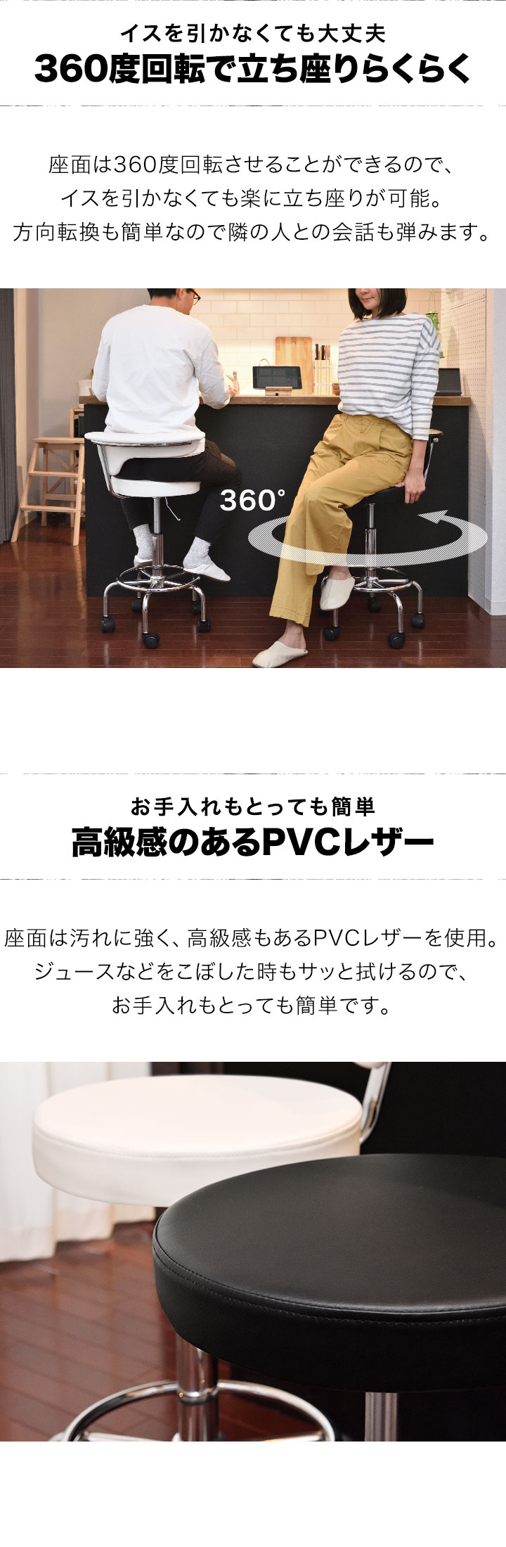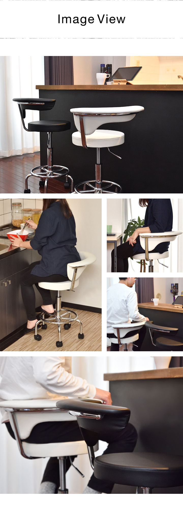 カウンターチェア (ブラック) キャスター付き 背もたれ付き ひじ掛け キッチンチェア バーチェア PUレザー ハイチェア バースツール ハイスツール 椅子 高さ調整 座面高 56cm~69cm 肘掛け付き おしゃれ チェア 回転式 昇降式 ガス圧 カフェ 送料無料