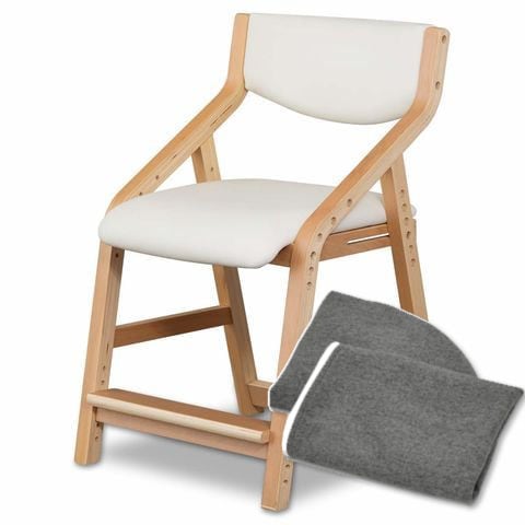 RiZKiZ 学習椅子 木製 (ナチュラル×ホワイト/本体+カバー/グレーセット) キッズチェア 座面高さ 6段階 42.5~55cm ダイニングチェア 子供用 キッズ 椅子 イス 学習イス 子いす 送料無料