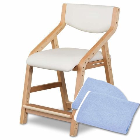 RiZKiZ 学習椅子 木製 (ナチュラル×ホワイト/本体+カバー/ライトブルーセット) キッズチェア 座面高さ 6段階 42.5~55cm ダイニングチェア 子供用 キッズ 椅子 イス 学習イス 子いす 送料無料