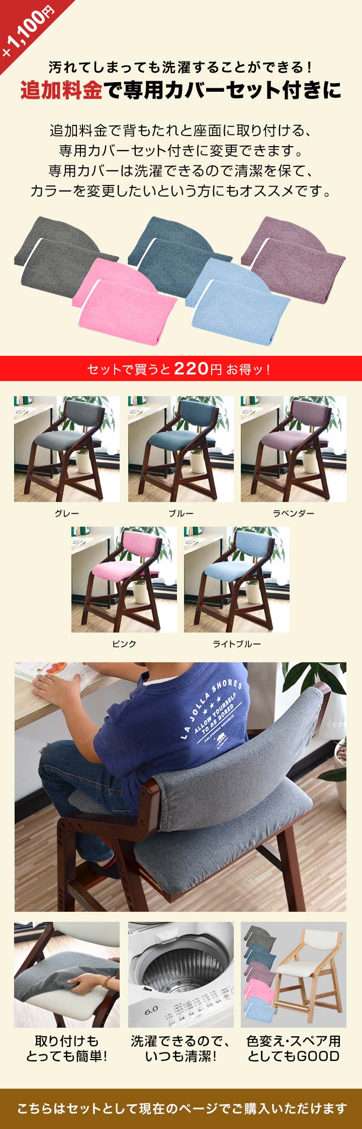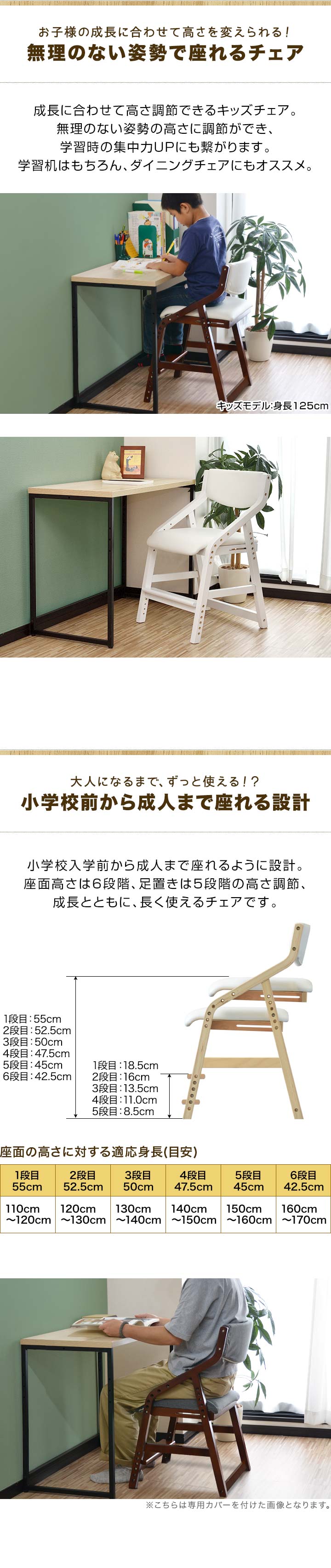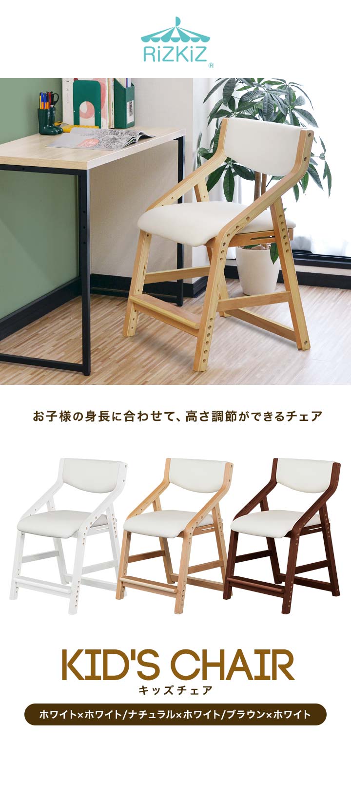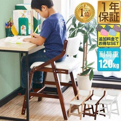 RiZKiZ 学習椅子 木製 (ブラウン×ホワイト/本体+カバー/ライトブルーセット) キッズチェア 座面高さ 6段階 42.5~55cm ダイニングチェア 子供用 キッズ 椅子 イス 学習イス 子いす 送料無料