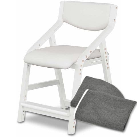 RiZKiZ 学習椅子 木製 (ホワイト×ホワイト/本体+カバー/グレーセット) キッズチェア 座面高さ 6段階 42.5~55cm ダイニングチェア 子供用 キッズ 椅子 イス 学習イス 子いす 送料無料