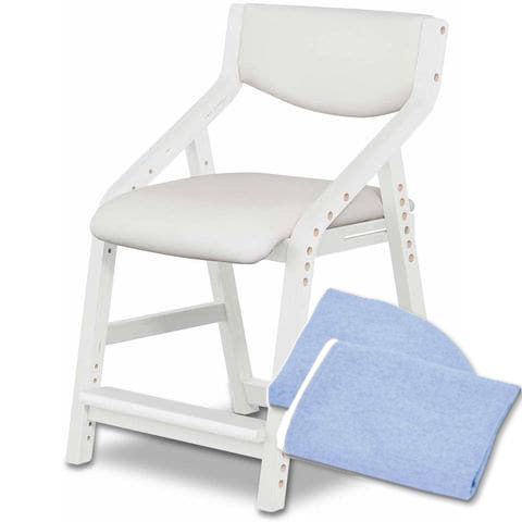 RiZKiZ 学習椅子 木製 (ホワイト×ホワイト/本体+カバー/ブルーセット) キッズチェア 座面高さ 6段階 42.5~55cm ダイニングチェア 子供用 キッズ 椅子 イス 学習イス 子いす 送料無料